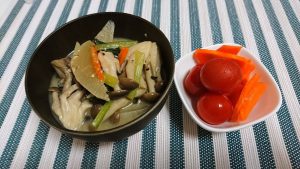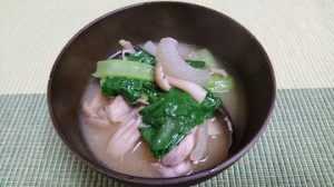 こんな鶏肉入りのお味噌汁だけで食事を済ますことも多く・・・